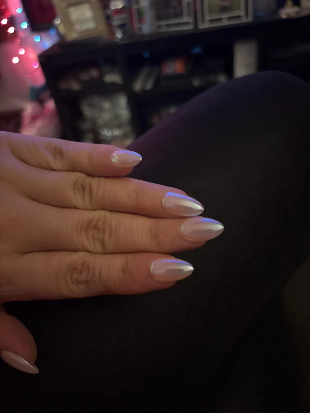 Amy Chrome Pearl Nails, Champagne Iridescent Press on Nails, Handmade Reusable Fake Nails, Multicolor Shifting, MO881