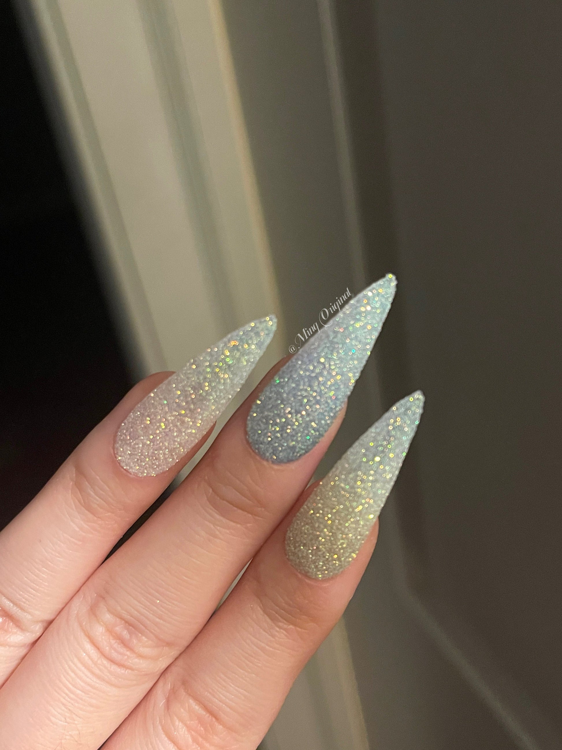 These nails are loose glitter textured. They do not have a smooth topcoat, some glitter may flake off and it’s the nature of this style. Option is available If you prefer a smooth topcoat finish.